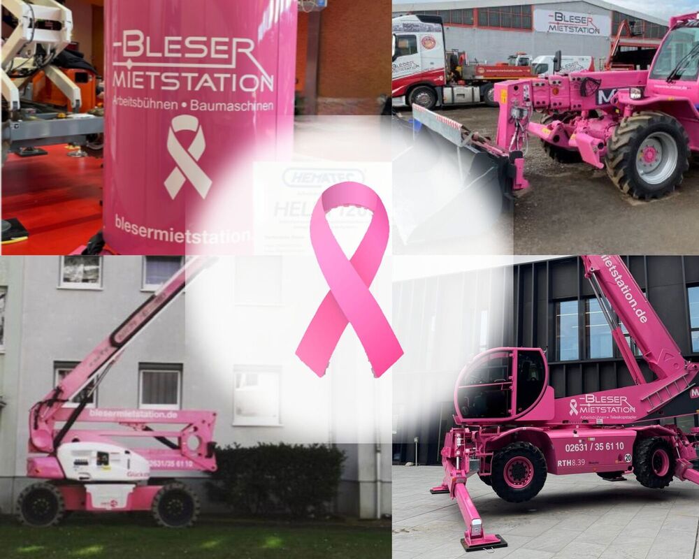 Zugunsten der Brustkrebs-Forschung haben die Blesers mittlerweile verschiedene Arbeitsbühnen und Stapler komplett in PINK erworben – der Farbe der Brustkrebsforschung.